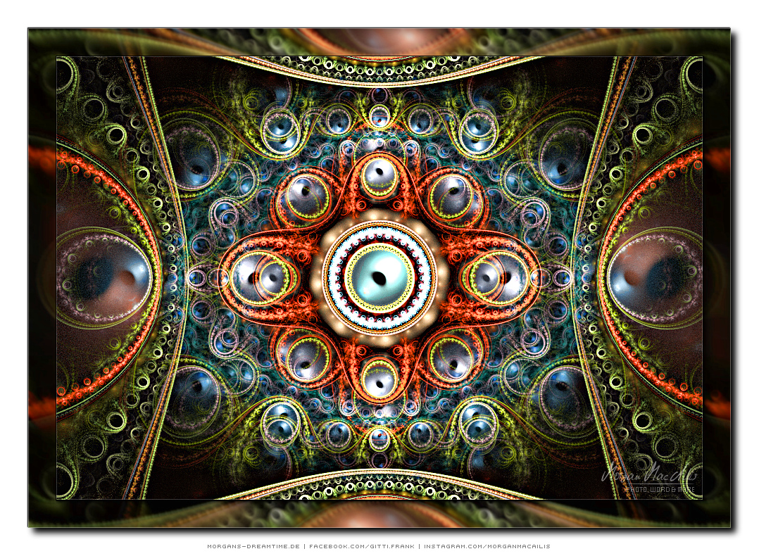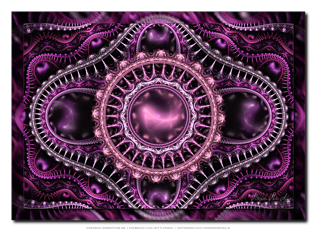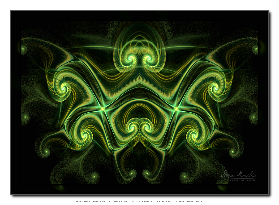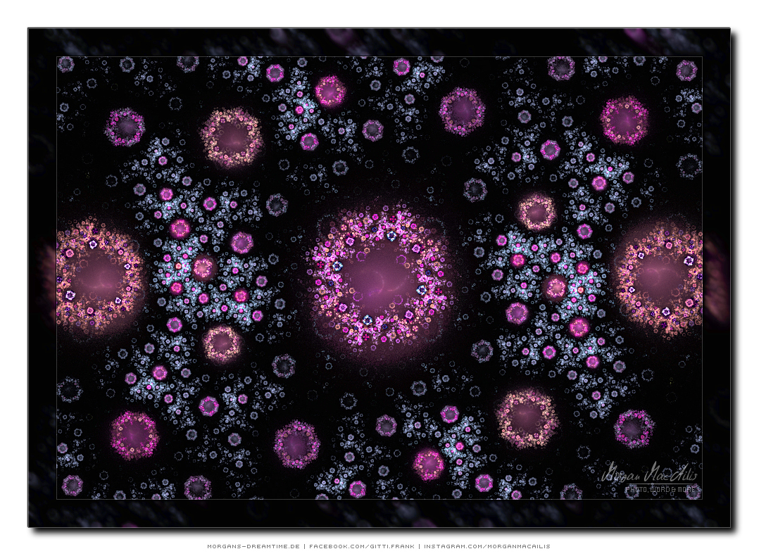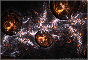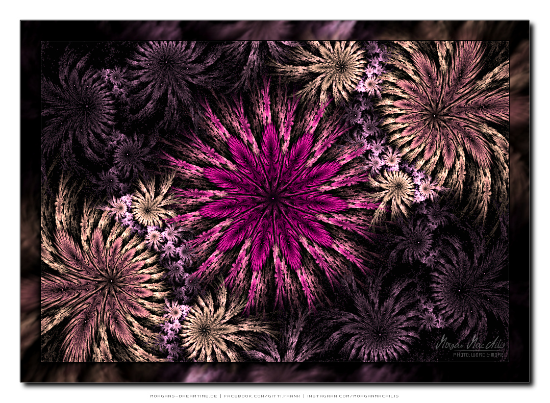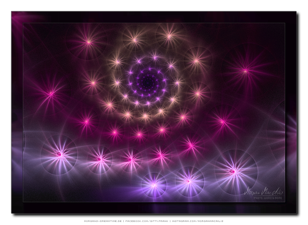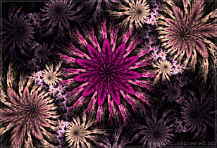 Apophysis - ein kostenloser Open-Source-Editor und Renderer für fraktale Flammen, basiert auf einem von Scott Draves Anfang der 90er Jahre eingeführten Algorithmus. Im Jahr 2001 übersetzte Ronald Hordijk seinen Code in Delphi und erstellte einen nicht animierten Bildschirmschoner. 2003/2004 nahm Mark Townsend Ronalds Code und fügte eine grafische Benutzeroberfläche hinzu, um Apophysis zu erstellen. Es wurde seitdem von Peter Sdobnov, Piotr Borys und Ronald Hordijk verbessert und aktualisiert. Seit 2009 gibt es eine Version namens Apophysis 7X. Ein starkes Feedback der Apophysis Benutzer ermutigt Updates des Entwicklers Georg Kiehne zu schaffen. Hier nun meine Apophysis-Galerie. Ein Klick und schon öffnet es sich in voller Größe. Leider fiel dieses Programm, bzw. die ganzen gespeicherten "Daten" meinem Festplattencrash zum Opfer.... Die Resultate in Bildform habe ich jedoch noch :)