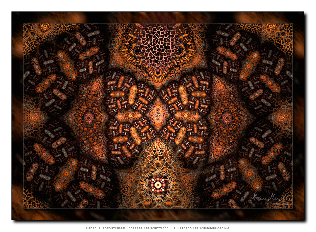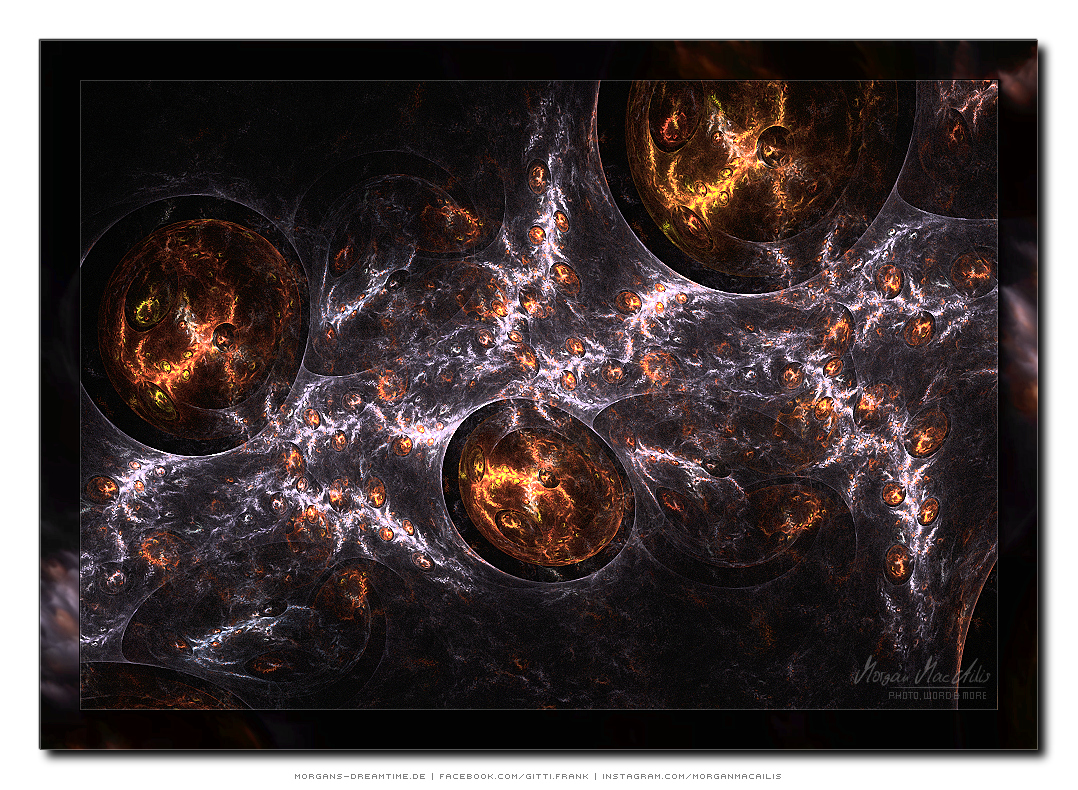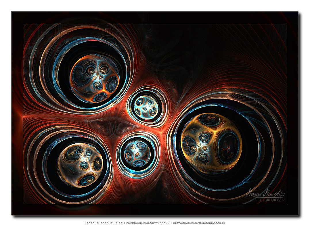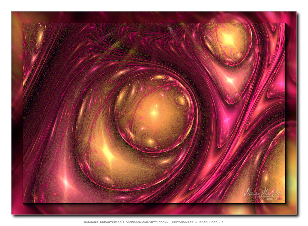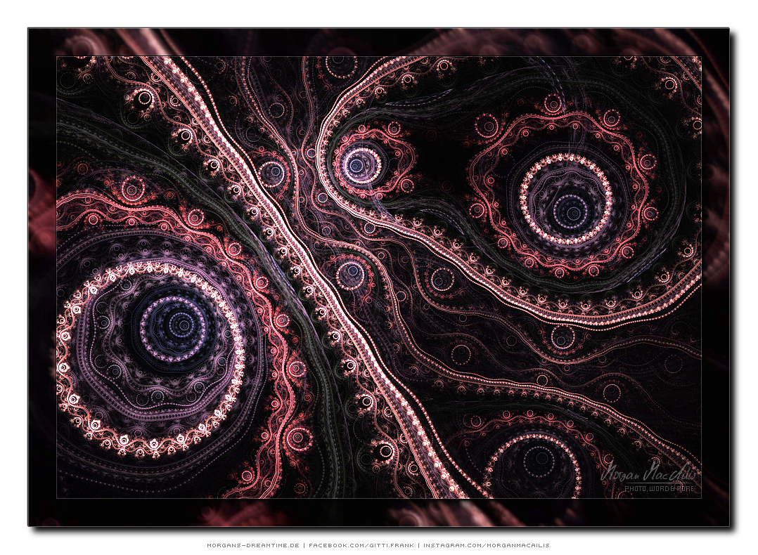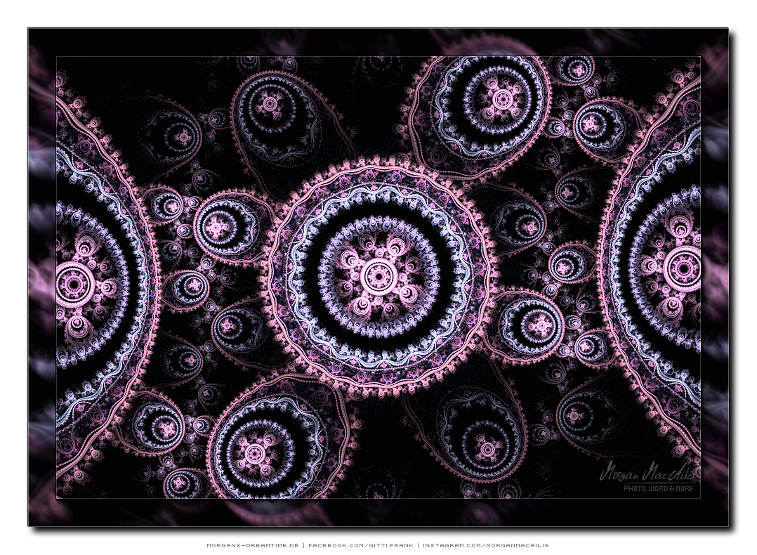Apophysis - ein kostenloser Open-Source-Editor und Renderer für fraktale Flammen, basiert auf einem von Scott Draves Anfang der 90er Jahre eingeführten Algorithmus. Im Jahr 2001 übersetzte Ronald Hordijk seinen Code in Delphi und erstellte einen nicht animierten Bildschirmschoner. 2003/2004 nahm Mark Townsend Ronalds Code und fügte eine grafische Benutzeroberfläche hinzu, um Apophysis zu erstellen. Es wurde seitdem von Peter Sdobnov, Piotr Borys und Ronald Hordijk verbessert und aktualisiert. Seit 2009 gibt es eine Version namens Apophysis 7X. Ein starkes Feedback der Apophysis Benutzer ermutigt Updates des Entwicklers Georg Kiehne zu schaffen. Hier nun meine Apophysis-Galerie. Ein Klick und schon öffnet es sich in voller Größe. Leider fiel dieses Programm, bzw. die ganzen gespeicherten "Daten" meinem Festplattencrash zum Opfer.... Die Resultate in Bildform habe ich jedoch noch :)