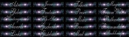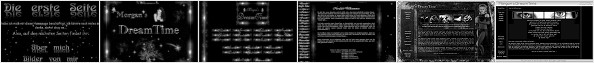 Es war ja alles schön und gut, das Layout gefiel mir mehr oder weniger, ich hatte einen umfangreichen Inhalt, aber irgendwie fand ich alles zu unübersichtlich in der Navigation. Also beschäftigte ich mich etwas mit Frames und baute alles komplett um. Dann noch ein wenig an den Buttons herumfeilen und eine Schrift wählen, die man nicht extra downloaden muss, und fertig war sie, meine DreamTime. Mit Flash befasste ich mich zwischen meinen ganzen Bastelanfällen auch noch, ebenso mit Bryce & Vue, Sammelkarten, Flicken, Blinkis.... ich ließ mir immer wieder etwas Neues einfallen.... Etliche Fantasiebilder entfernte ich und zeigte nur noch die, von denen ich vom Künstler selber die Erlaubnis erhielt, sie auf meine Hp zu setzen.